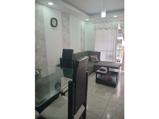 El apartamento cuenta con 3 habitaciones, 2 baños, sala comedor, cocina integral con horno, zona de oficio, balcón y vista interna. La unidad cuenta con salón social, cancha múltiple, parques infantiles, piscina para niños y adultos, vigilancia privada y parqueadero comunitario.